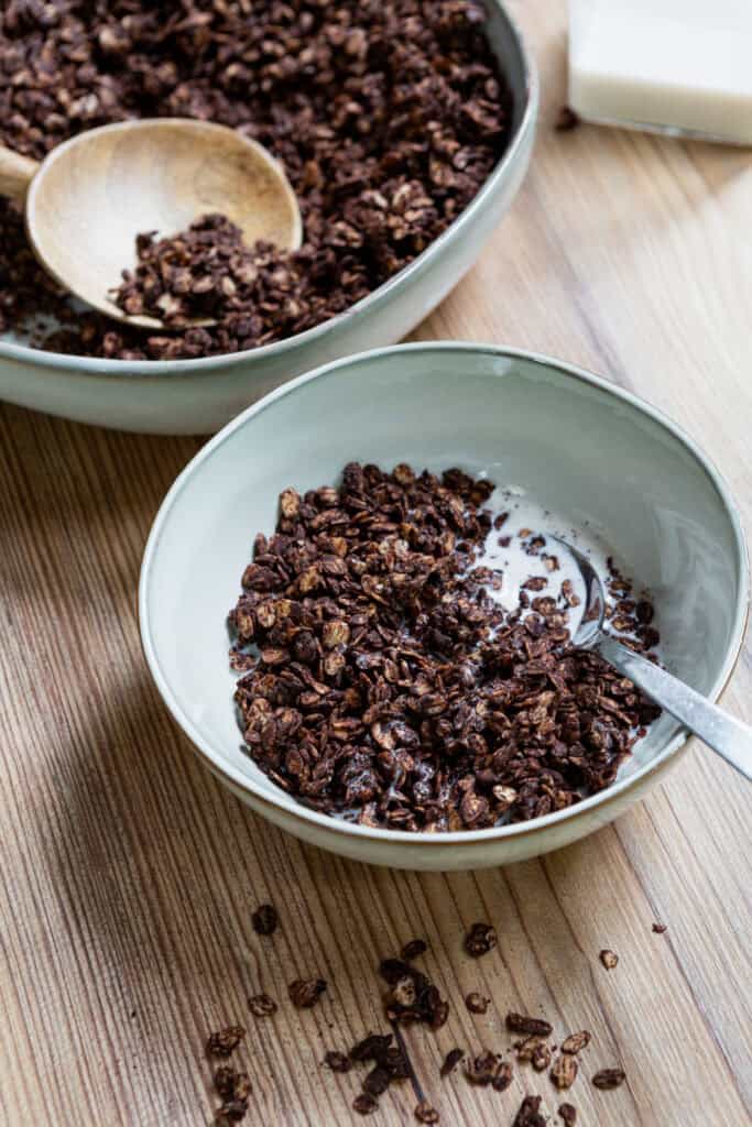 Ob als schneller Start in einen energiegeladenen Tag oder als nahrhafter Snack – mit diesem Schokoladen-Granola habt ihr erst mal eine solide Grundlage. Ich hoffe, es schmeckt euch mindestens genau so gut wie mir!