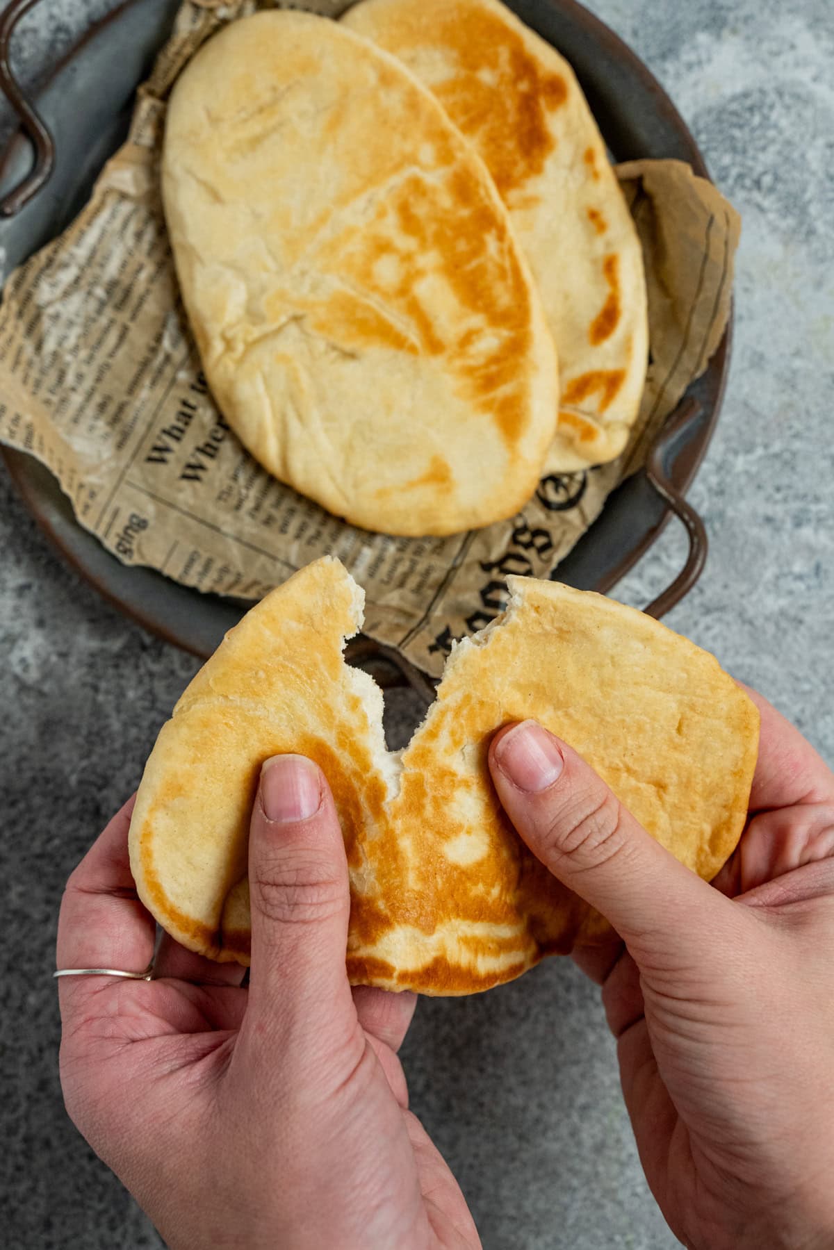 Traditionell wird Naan im Tandoor gebacken, einem Lehmofen, der Temperaturen von über 400°C erreicht. Die Pfanne kommt dem erstaunlich nah: hohe Hitze von unten, direkter Kontakt, kein Austrocknen. Das Wasser auf der Unterseite des Teiglings verdampft schlagartig und macht das Brot von innen fluffig, während die Oberfläche die typischen braunen Flecken bekommt.