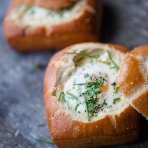 Ein ausgehöhltes Brötchen, gefüllt mit Ei und Käse, im Ofen gebacken. Niedlich, lecker, und perfekt für den Ostermorgen. Die Kinder lieben es, die Erwachsenen auch.