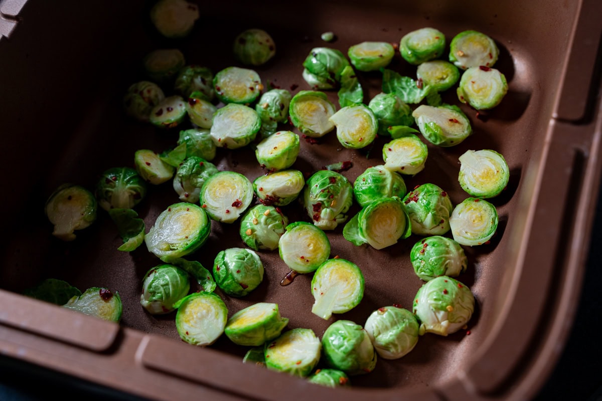 - Den Rosenkohl in den Airfryer-Korb geben. Nicht überladen, die Stücke sollen möglichst in einer Schicht liegen.