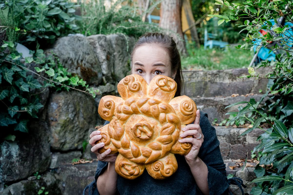 Mein Kochheld ist im Hofladen der Manufaktur Rösch kurz frei gedreht. Auch er kannte Hägenmark bis zu unserem Besuch dort nicht und hat gefühlt ein mal kurz den Hofladen leergekauft. Mit unseren Hagebutten-Köstlichkeiten im Gepäck haben wir uns anschließend zum Picknick begeben. Bad Ditzenbach gehört nämlich zur Erlebnisregion schwäbischer Albtrauf und hat für Erlebnis- und Erholungssuchende viel zu bieten: Auf den Anhöhen der schwäbischen Alb kann man wunderbar Wandern, Spazierengehen und Radfahren. Wir lassen uns am Steinpyramiden-Aussichtspunkt nieder und genießen den atemberaubenden Ausblick, während wir es uns mit allerlei regionalen Köstlichkeiten, einem frischen Hefezopf, dem Hägenmark, einem großen Becher Hagebuttentee und ein Bier der Kaiser Brauerei, die auch ganz in der Nähe – nämlich in Geislingen – ansässig ist, gut gehen lassen.